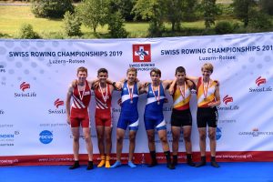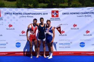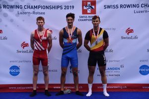 Silber! Gian Luca Egli weiss: In diesem Finale ist alles anders. Nachdem er in diesem Jahr sämtliche Regatten gewinnen konnte, mischen diesmal zusätzlich zwei Athleten mit, die mit dem Schweizerischen Ruderverband bereits erfolgreich an internationalen Wettkämpfen teilgenommen haben. Der Rennverlauf zeigt, dass sich Gian Luca mit dem direkten Angriff nach dem Start für die richtige Taktik entschieden hat. Er wird erst nach 1000 m von der Spitze abgelöst und fährt mit persönlicher Bestzeit auf den 2. Platz.