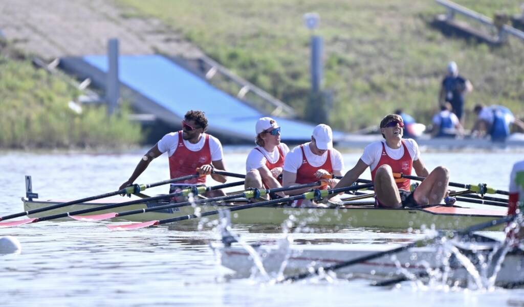 Am Freitag absolvierten beide Boote die letzten Trainings auf dem Wasser vor dem intensiven EM-Wochenende. Am Samstagmorgen fanden die Vorläufe in Račice statt. Gian Luca und seine Mannschaft erwischten einen verhaltenen Start, konnten sich aber auf den zweiten 500 Metern solide behaupten. Über die Streckenmitte verloren sie etwas den Anschluss an die führenden Boote. Auf dem dritten 500er machte sich der aufkommende Gegenwind bemerkbar, wodurch das Team an Struktur einbüsste. Im Schlussspurt sammelten sie jedoch noch einmal alle Kräfte und zeigten eine kämpferische Leistung. Am Ende belegten sie in ihrem Vorlauf den dritten Rang. Aufgrund des Qualifikationssystems reichte dieses Ergebnis nicht für den Einzug ins A-Finale, sodass sie am Sonntag im B-Finale an den Start gingen.