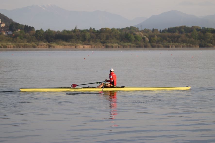 Am Donnerstagnachmittag konnten bei guten Bedingungen die erste Trainingsfahrt in Italien unternommen werden. Am Freitag fuhren die Athleten zwei Skiffrennen. Der Vorlauf wurde im Time-Trial-Verfahren bestritten, d.h. jeder Athlet fährt «sein eigenes Rennen». Dabei wird nacheinander gestartet und die Zeit wird einzeln gemessen. Aufgrund des besten Ergebnisses im Time Trial am Freitagmorgen erreichte Alexander den A-Final und auch dort fuhr er mit der besten Skiff Zeit ins Ziel. Er brachte sich somit in eine sehr gute Position für die weiteren Rennen. Aufgrund der Ergebnisse des Skiffrennens erfolgen jeweils die ersten Bootseinteilung für die Rennen, welche zur Mannschaftsbildung der Boote dient.